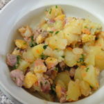 - Far lessare le patate con la buccia per 20 minuti ( il tempo dipende dalla grandezza delle patate) Le mie erano 2 piccole. Farle raffreddare, pelarle, poi tagliarle a pezzetti e metterle in un piatto.
