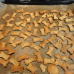 - Con un tagliabiscotti piccolo a forma di osso tagliare i biscotti e metterli su una teglia ricoperta di carta forno.