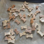 - Stendere l'impasto con il mattarello 1/2 cm di altezza e con un tagliabiscotti a forma di osso piccolo, ritagliare i biscottini.