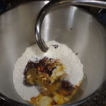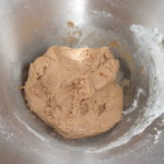 - Aggiungere il composto di miele tutto in una volta; con la frusta a gancio amalgamarlo con la farina: 1 min./ vel.1, poi continuare ad impastare con le mani.