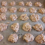 • Con un cucchiaio, prendete un pò di composto e fate tanti mucchietti di circa 3 cm di diametro su una piastra ricoperta da un tappetino antiaderente.