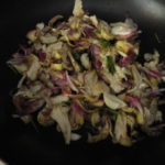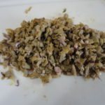 - Spegnere e allargare tutto su un piatto a intiepidire, poi tritare con il coltello (farcia).