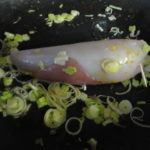 - Riempire i calamari con la farcia, senza lasciare vuoti nel ripieno. Mondare il porro e affettarlo.