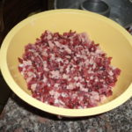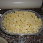 - Ho unto la superficie del rettangolo con lo strutto, ho messo il salame ed i formaggi a tocchetti.
