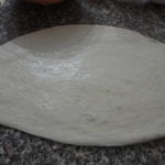 - Sabato sera: ho sgonfiato l'impasto e l'ho steso con il mattarello ottenendo un rettangolo stretto e lungo secondo le misure del mio stampo.
