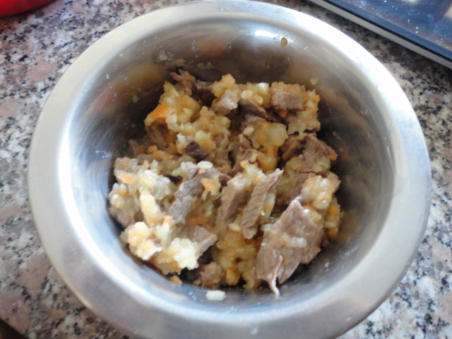 Un'altra ricettina per il mio barbone medio Lothar : cavallo, patate e carote.