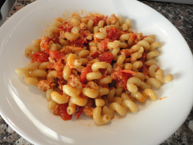 Pasta integrale con pomodorini e tonno, saporita ma dietetica.