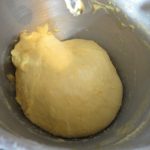 • Aggiungere la farina e il lievito e, dopo 15 minuti, a pasta formata incorporare il burro morbido, ma non sciolto ( io l’ho aggiunto dopo 10 minuti da velocità minima, vel. 1 e poi 2) e i tuorli che io ho aggiunto a 17 minuti di lavorazione sempre velocità minima, 1 e poi 2).