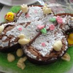 • Ho decorato la colomba grande con decori di pasta di zucchero e cioccolatini a tema pasquale.