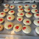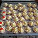- Mettere l'impasto nel sac a poche con bocchetta dentellata e modellare i pasticcini a forma di rosetta in pirottini mignon da pasticceria ed al centro porre mezza ciliegia rossas.