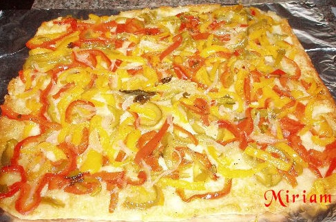 Questa focaccia ai peperoni è buonissima ed anche semplice e veloce da preparare con l'aiuto del bimby.