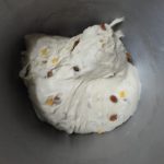 - Far prendere corda all'impasto e aggiungere il burro, incordare nuovamente e in ultimo aggiungere le uvette e i canditi infarinati e passati al setaccio per eliminare l'eccesso di farina.