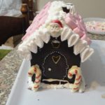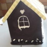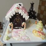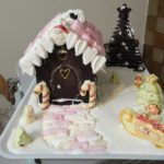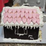 - Sui tetti della casetta ho incollato i marshmallow a forma di cuore, altri bastoncini formano la strada verso la casetta.