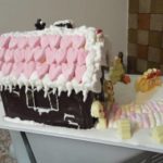 - Ho usato un vassoio per torte in plastica bianco, e ricoperto di glassa bianca e poi ho messo su i vari pezzi.