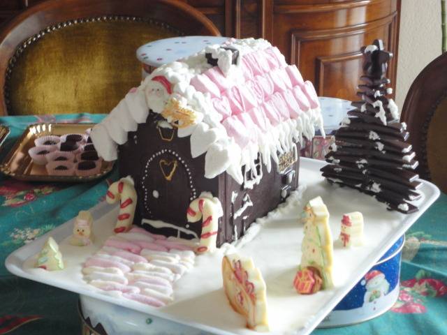 La casetta di Babbo Natale di cioccolato fondente e bianco