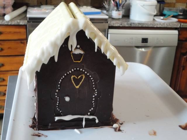 La casetta di Babbo Natale di cioccolato fondente e bianco