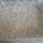 - Aggiungere al composto i biscotti e il cocco messi da parte: 10 sec./ vel.5, quindi versare il composto nella teglia ricoperta da carta forno.