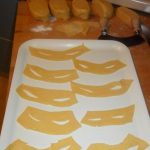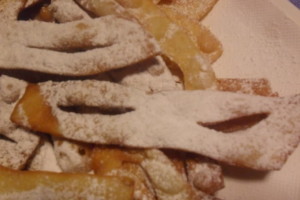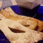 - Tirare una sfoglia piuttosto sottile, tagliarla a forma di mascherine e friggerle in olio bollente.