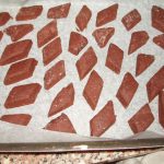 - Mettere le forme così tagliate in una teglia ricoperta di carta forno, infornare in forno statico preriscaldato a 180° per massimo 10 min. Sfornare e lasciar raffreddare.