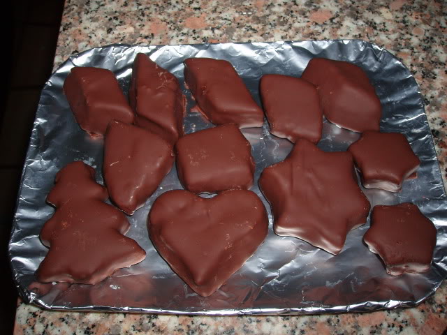 Hanno forma romboidale, di media grandezza (io li ho preparati con forme natalizie) generalmente ricoperti da una glassa al cioccolato (io li ho ricoperti, invece, con cioccolato fuso come da tradizione)