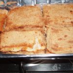 - Sistemate i sandwich in una teglia (ho usato un contenitore usa e getta) e passateli 5 minuti per lato sotto il grill del forno ben caldo, fino a che avranno preso un bel colore dorato.