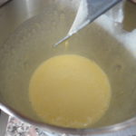 - Incorporare l'olio versandolo in 4 volte, infine aggiungere i 110 g di farina setacciata.