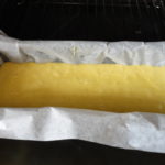- Mettere la massa negli stampi da cake rivestiti con l'apposita carta, poi tagliare il dolce longitudinalmente con una spatola immersa nel burro fuso. (ho messo la massa in un unico stampo 30 x 7)