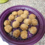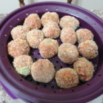 - Amalgamare bene e fare le polpette, passarle nel pane grattugiato e metterle nel colino del microwave.