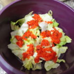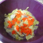 - Mettere nella base del microwave qualche foglia di iceberg e i peperoni tritati.