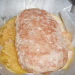 - Stendere il composto così ottenuto su carta forno un pò oleata e farcirlo con il prosciutto e le sottilette.