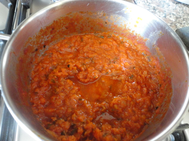 - Aggiungere l'olio: 5 min./100°/ vel. 1, poi la passata ed il sale: 20 min./100°/vel.1