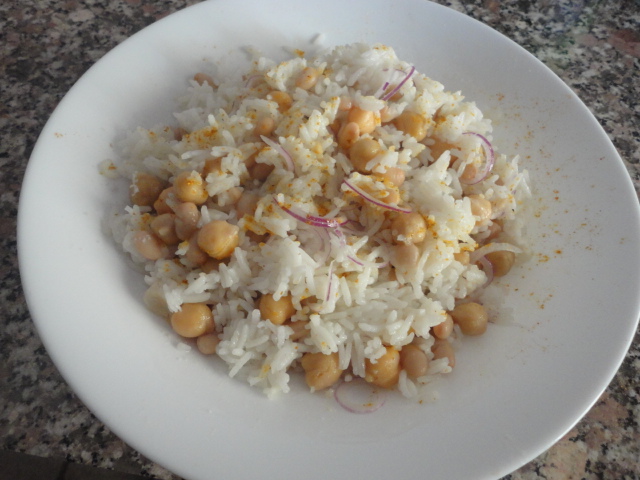 Il titolo originale della ricetta è “Riso basmati con tonno, fagioli borlotti, cipolla rossa dolce e curry”. Io ho cambiato alcuni ingredienti i fagioli ed eliminato il tonno, attenendomi a quello che è il mio protocollo dietetico. Veloce e molto gustosa.