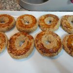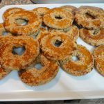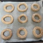 • Con ogni fetta ottenuta formare una ciambella, utilizzando l'attrezzo per preparare i doughnuts oppure lavorate la fetta come un salamino e poi chiuderlo a ciambella e disporre su una teglia rivestita di carta forno