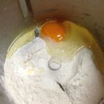 - Versare nel boccale del bimby la farina, le uova, il burro morbido, lo zucchero e la buccia grattugiata del limone: 2 minuti / vel. Spiga