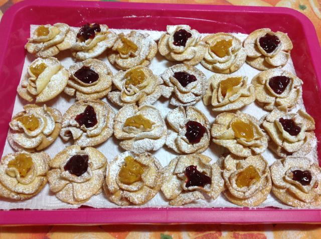 Roselline di Carnevale preparate da Mariad con lo stesso impasto delle chiacchiere.