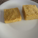 - Prendere intanto una teglia da forno, spennellarla di olio nella quale metteremo 2 coppapasta quadrati che spennelleremo di olio e riempiremo con il miglio cotto, pressare e poi eliminare i coppapasta.