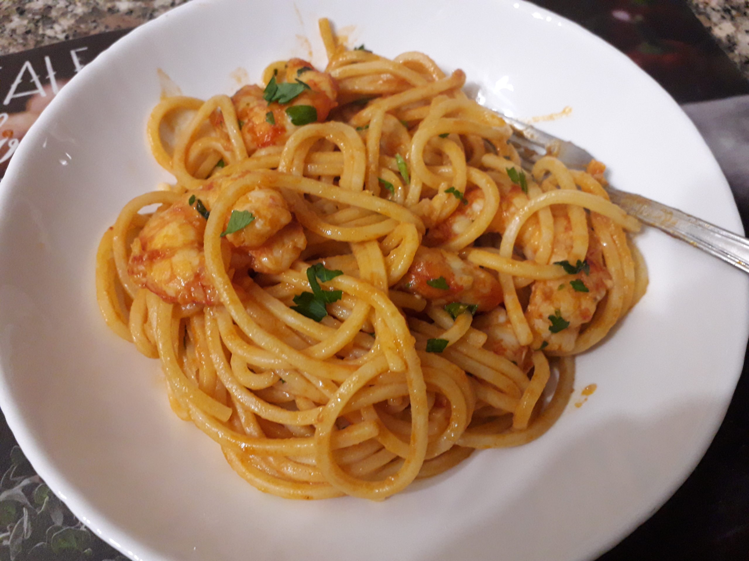 Spaghetti quadrati con gamberoni con il bimby TM6