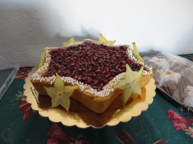 - Decorate con i rametti, spolverizzati di zucchero a velo, con il nastro e spicchi di melagrana.