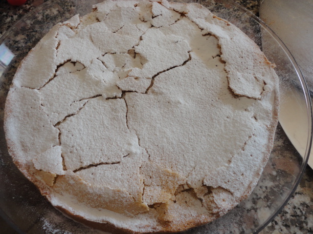 *Purtroppo nella ricetta trascritta c'era un errore nel tempo nell'aggiunta delle uova 2 minuti anzichè 10 sec. per cui è venuta in superficie una schiuma che chiaramente si è sbriciolata dopo la cottura , come si può vedere nella foto.
